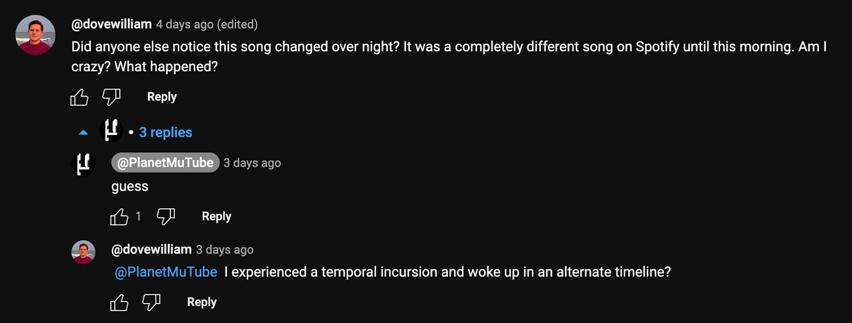 So what happens when we’re at the mercy of platforms? Well, in this case, “Hyper Daddy” was pushed to Spotify on Friday, then it was replaced with a different song—probably the actual “Hyper Daddy”—the next morning, but only after I listened to it (whatever it was) nonstop on Friday, all into the evening, and it was now my favorite song, and when I opened Spotify on my phone on Saturday, I couldn’t find it. Apparently I wasn’t the only one.